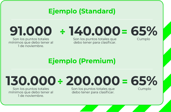 Debes llegar a 40.000 puntos al 31 de octubre de 2025 , quien no haya conseguido ese 40%, queda sin posibilidades de calificar.